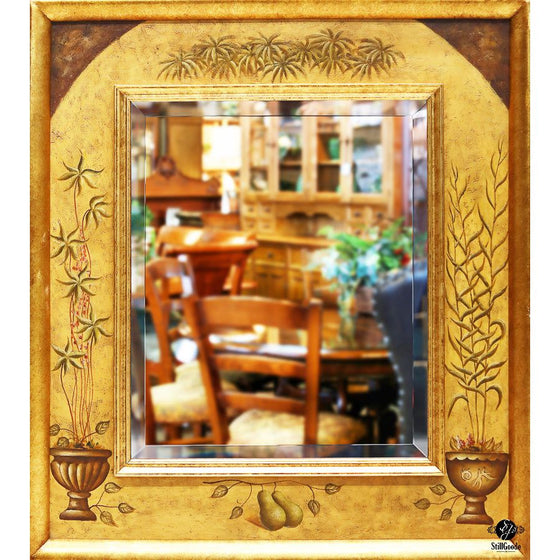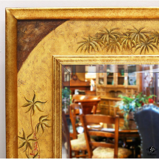 Beveled Bassett mirror set in a gold frame.